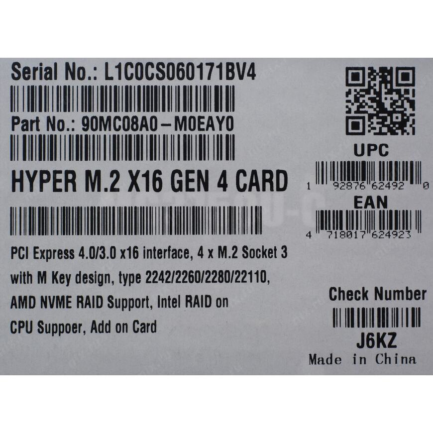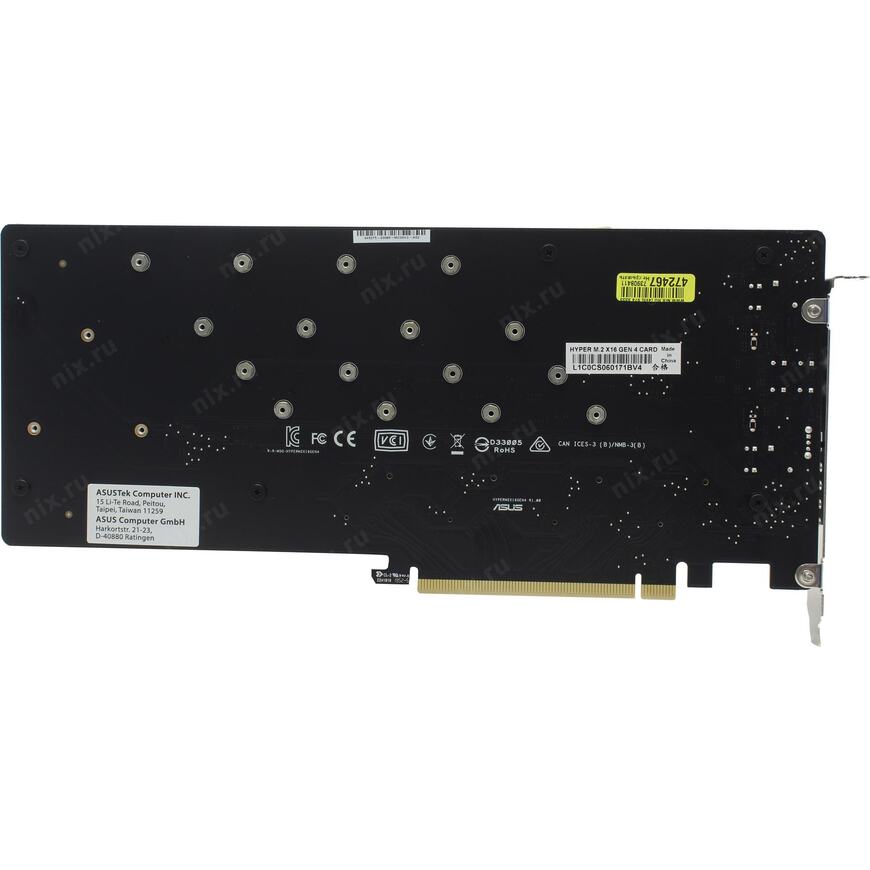 Карта расширения для формирования RAID-массивов из SSD-накопителей M.2 PCI-Express. RAID-массив подключается напрямую к процессору по шине PCI Express 4.0 с пропускной спопобностью 256 Гбит/сек. Производительность традиционных RAID-массивов ограничена пропускную способность шины DMI 32 Гбит/сек.