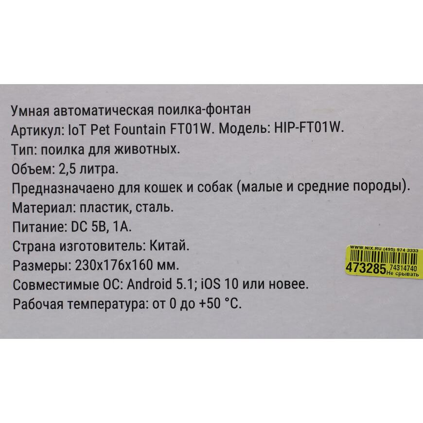 | Модель | IoT Pet Fountain HIP-FT01W |