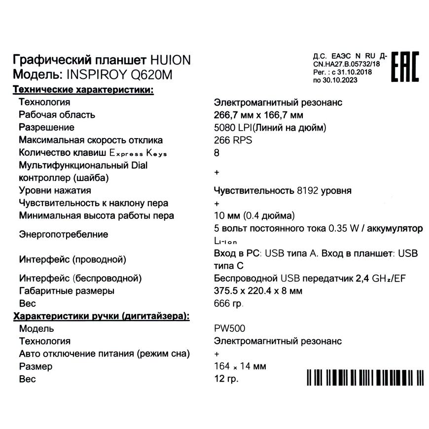 | Комплект поставки | Адаптер Wi-Fi, Кабель USB, Перо, Подставка для пера |