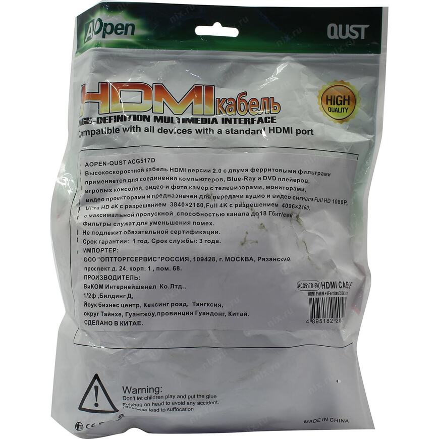 | Страна изготовления товара | Китайская Народная Республика |