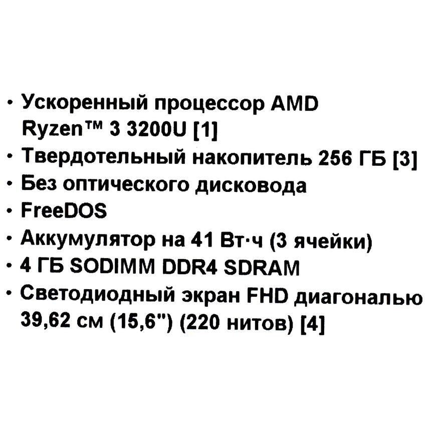 | Процессор ноутбука | AMD Ryzen 3 3200U (2.6 - 3.5 ГГц, 2 ядра, 15 Вт) |