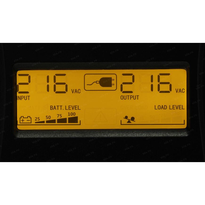 | ЖК-дисплей | Есть Входное/выходное напряжение, режим работы ИБП, остаточный заряд батареи ИБП, мощность нагрузки, неисправность ИБП |
