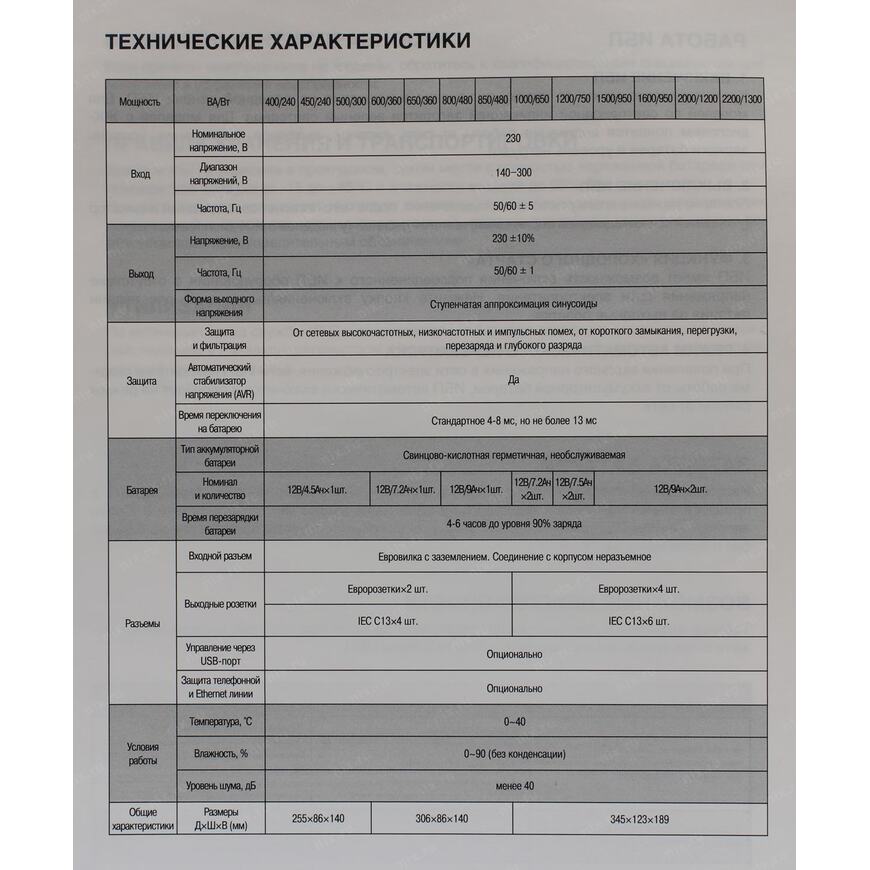 | Кол-во розеток с батарейной поддержкой | 2 |