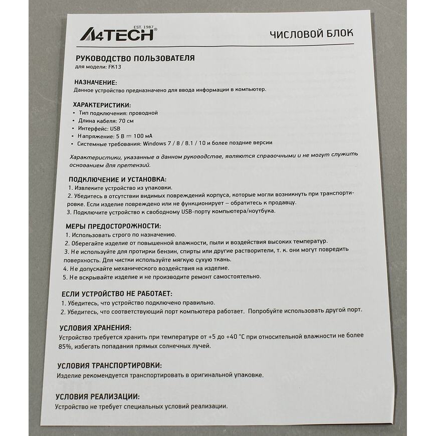 Цифровой блок A4Tech FK13 USB (GREY)