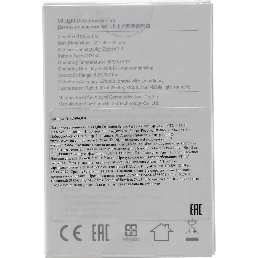 | ПРЕДУПРЕЖДЕНИЕ | Wi-Fi нет! Для работы устройства нужен приобретаемый отдельно хаб Mi Home Gateway или Aqara Gateway |