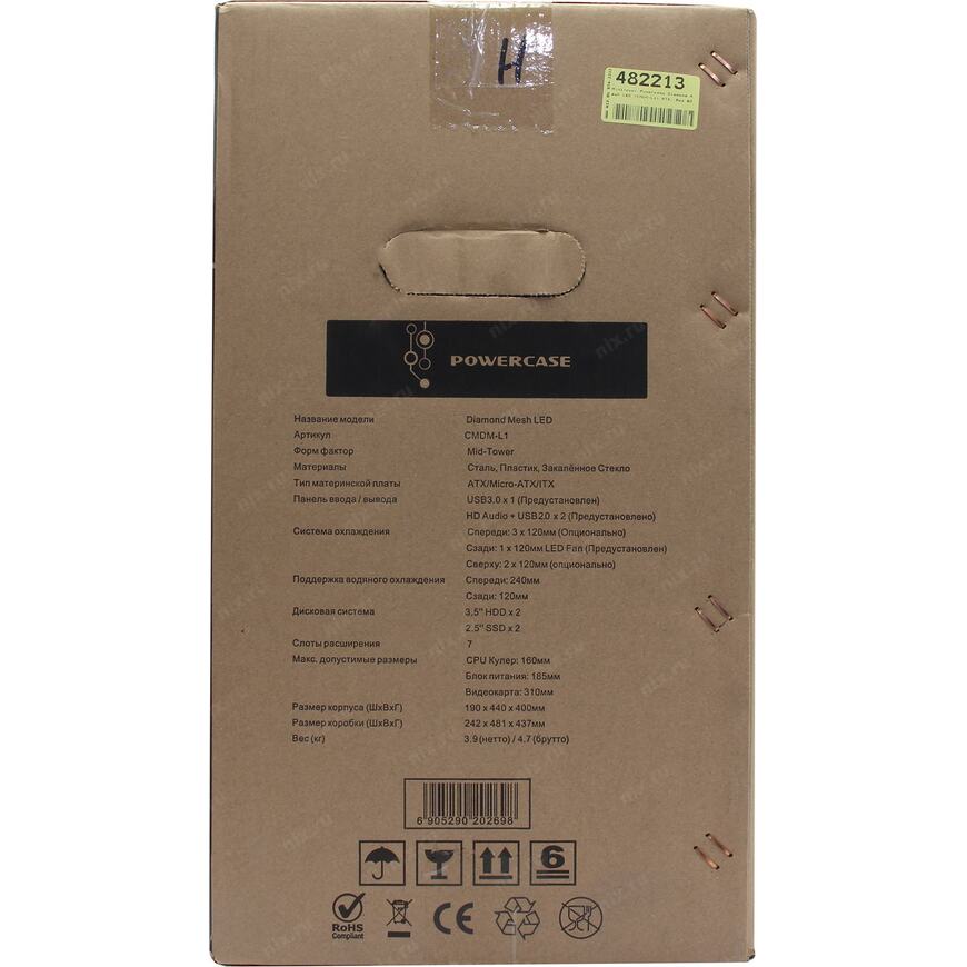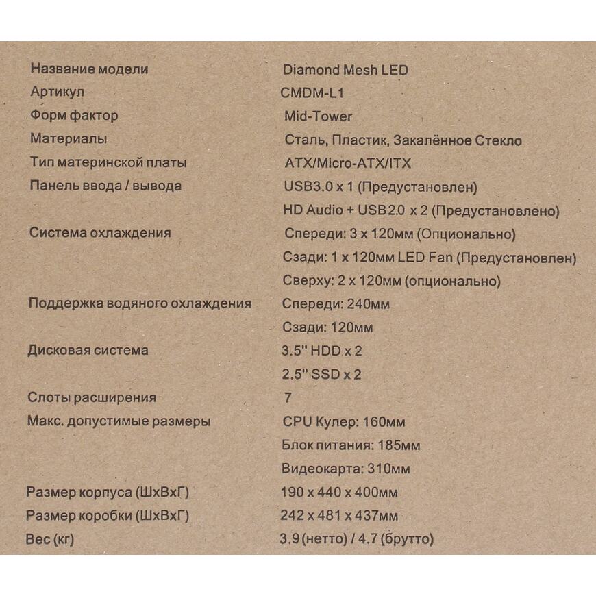 1 вентилятор: 120 x 120 мм (на задней панели)