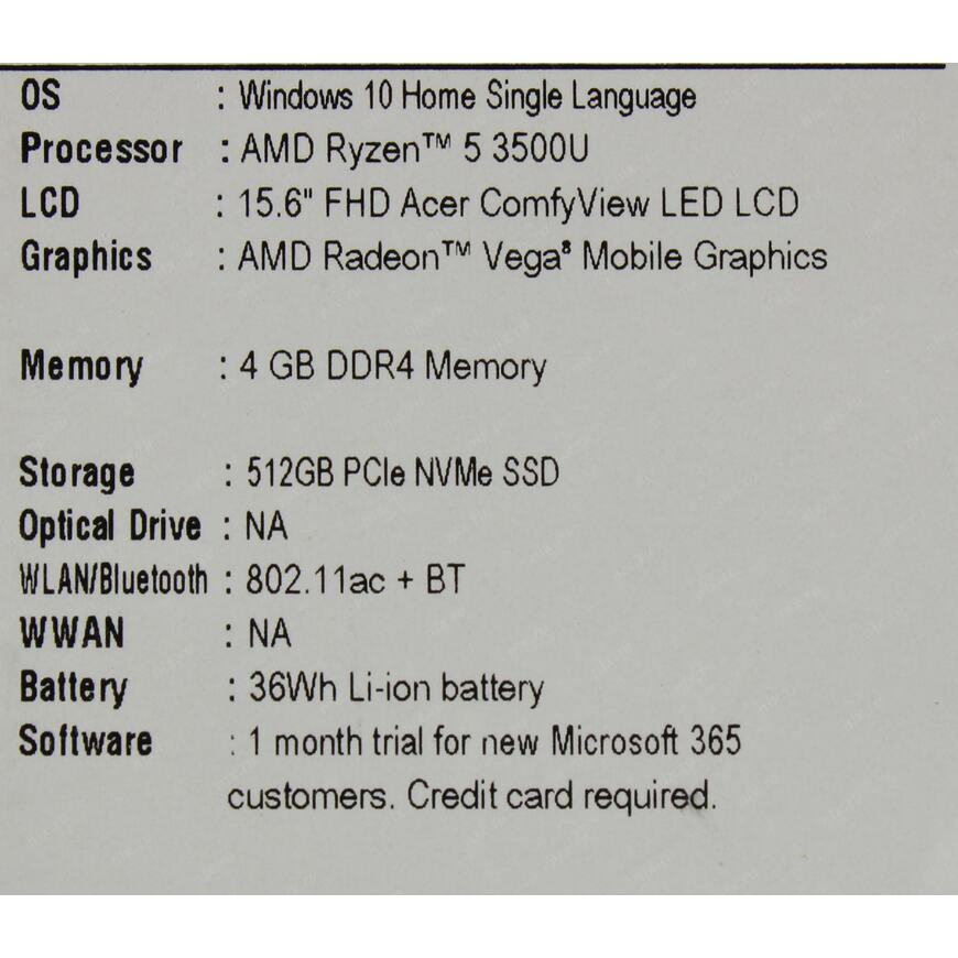 | Процессор ноутбука | AMD Ryzen 5 3500U (2.1 - 3.7 ГГц, 4 ядра, 15 Вт) |