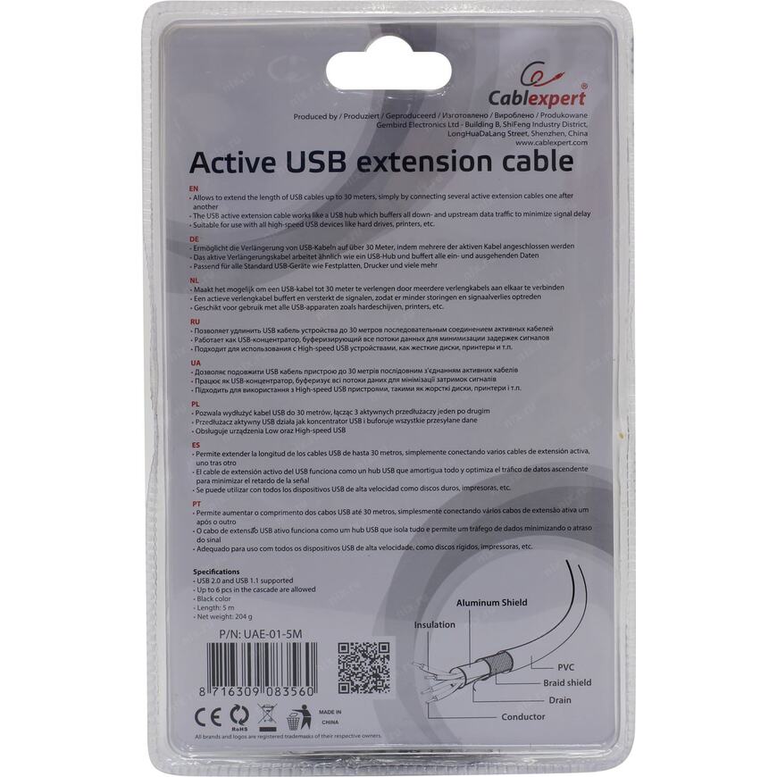 Удлинитель активный USB 2.0 A -> A Cablexpert UAE-01-5M Черный 5 м.