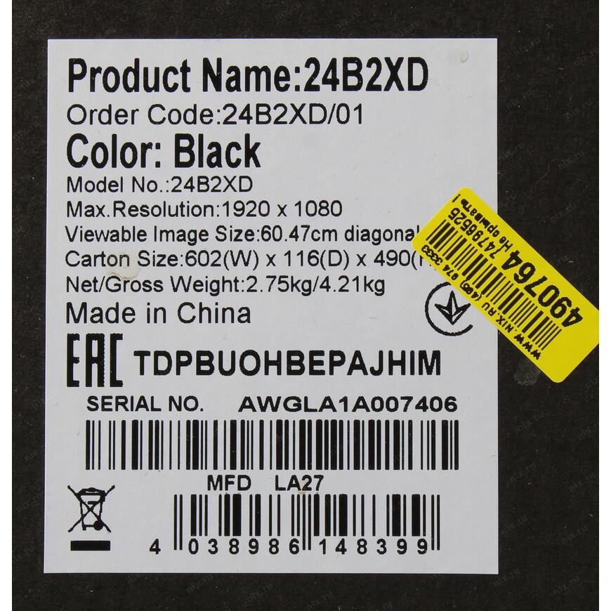 | Размеры упаковки (измерено в НИКСе) | 60.27 x 48.5 x 12.01 см |