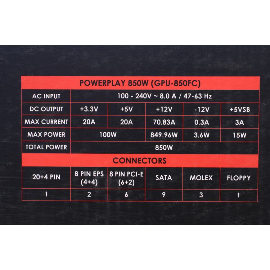 | Мощность блока питания | 850 Вт |