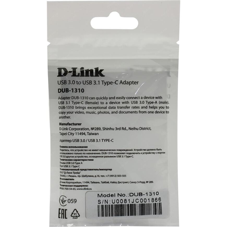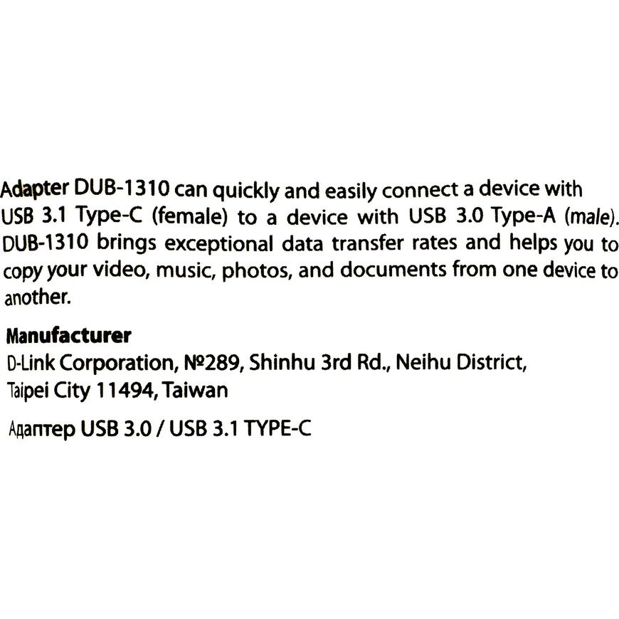 | Описание | Адаптер DUB-1310 позволяет подключить к устройству с портом USB 3.0 Type-A другое устройство, оснащенное разъемом USB Type-C. Просто подключите DUB-1310 к порту USB 3.0 - адаптер готов к работе сразу после установки. |
