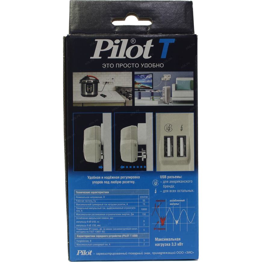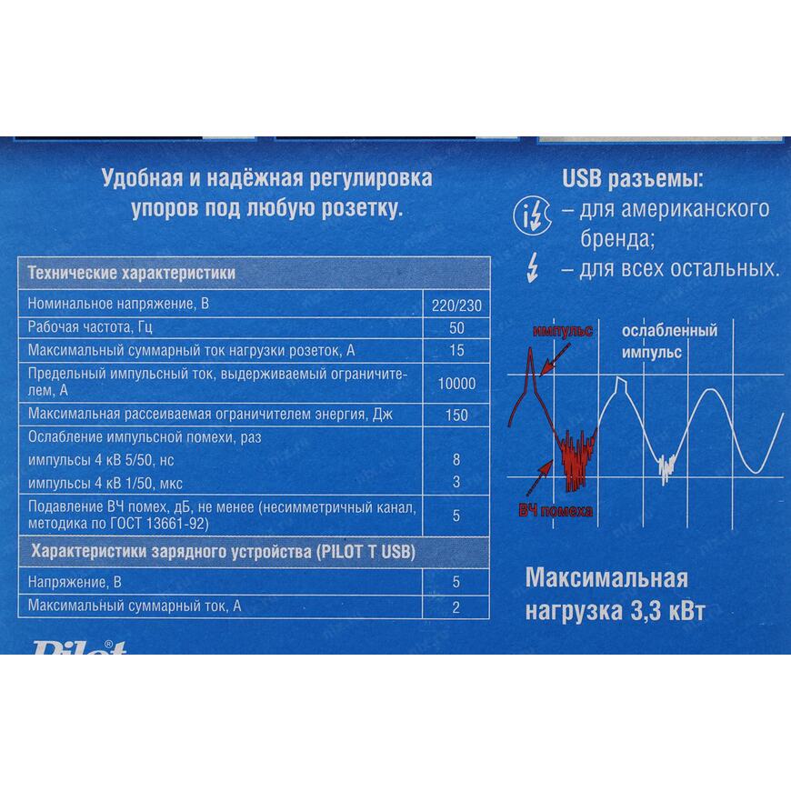 | Описание | Сетевой фильтр с защитой от перегрузки и импульсных помкех Pilot T предназначен для подключения к розетке электросети до четырех бытовых приборов. |