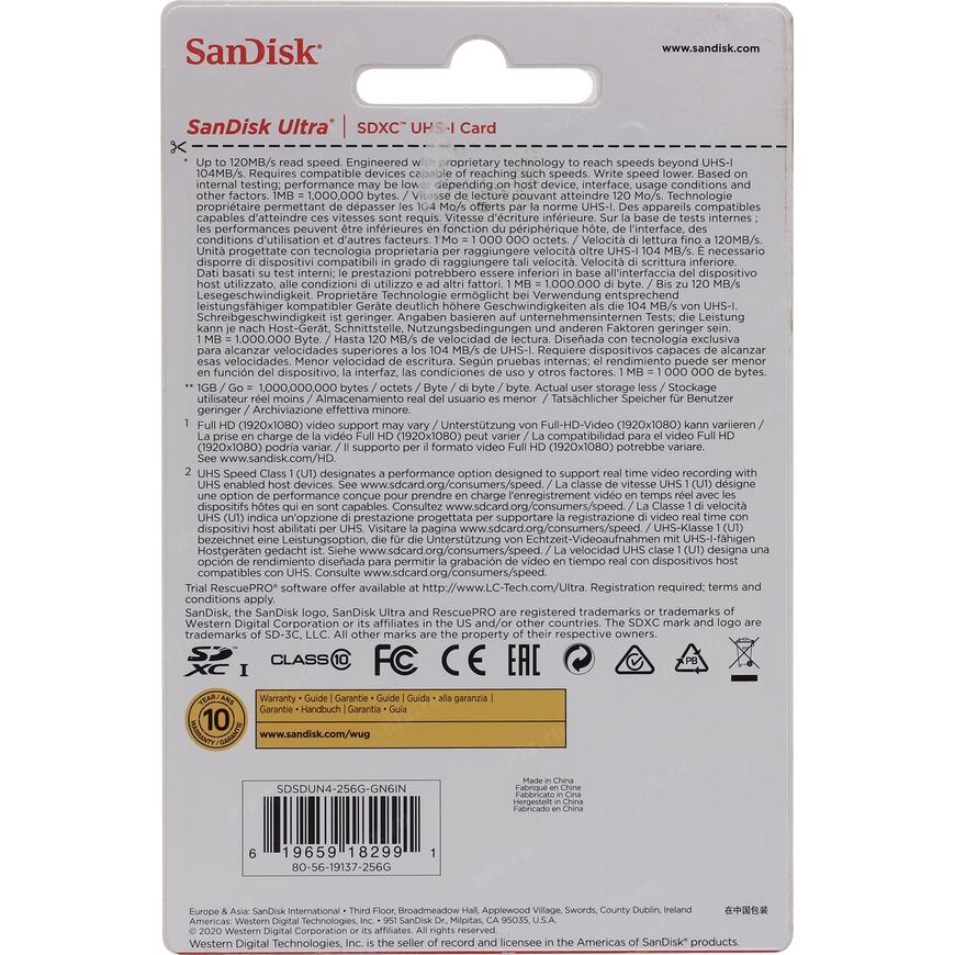 | Модель | SDSDUN4-256G-GN6IN |