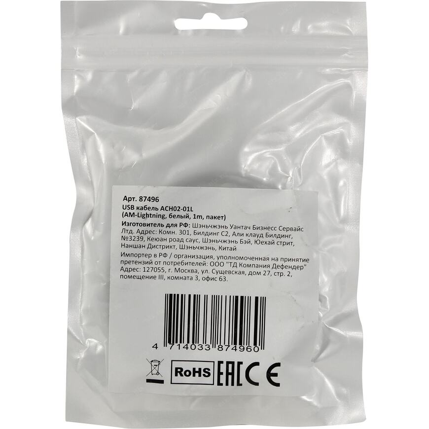 Кабель Lightning Defender ACH02-01L Белый 1 м.