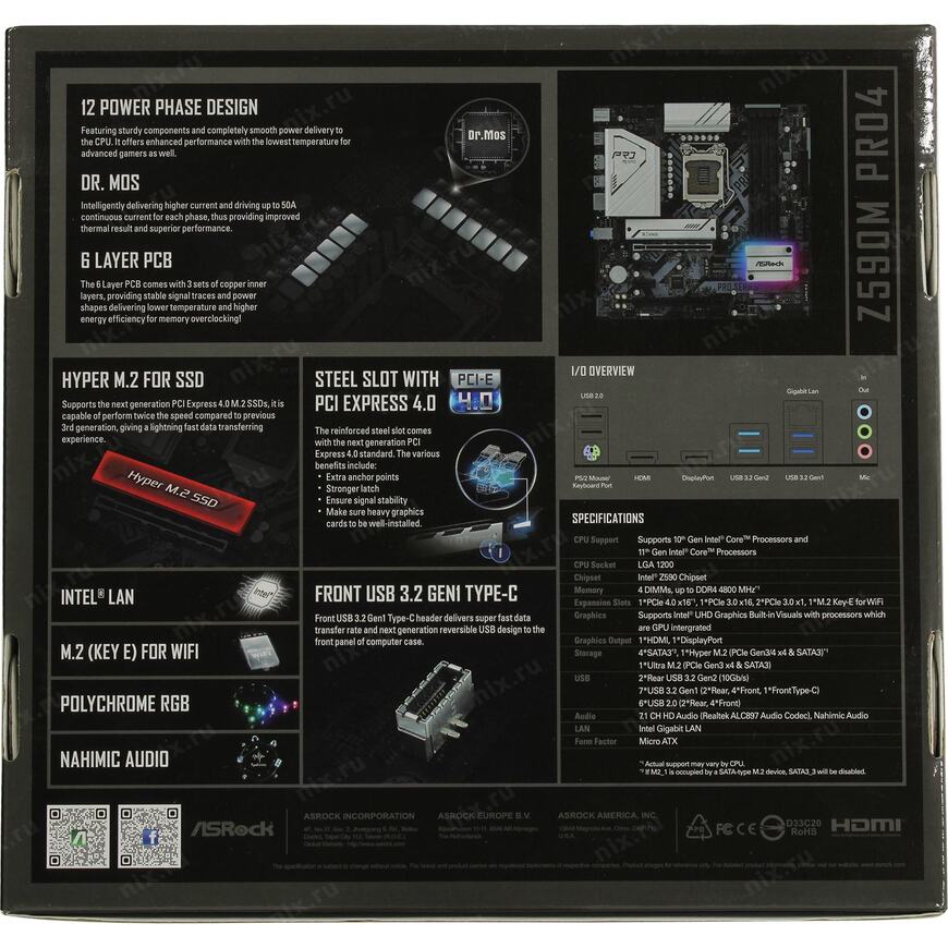 | Описание | Driver-MOSFET (DrMOS), RAID из M.2 SSD, Радиатор для M.2, Защита от статического электричества на разъемах задней панели, Защита сетевой карты от статического электричества, Разъемы USB 3.1 10 Gbps, Экранирование звуковой подсистемы |
