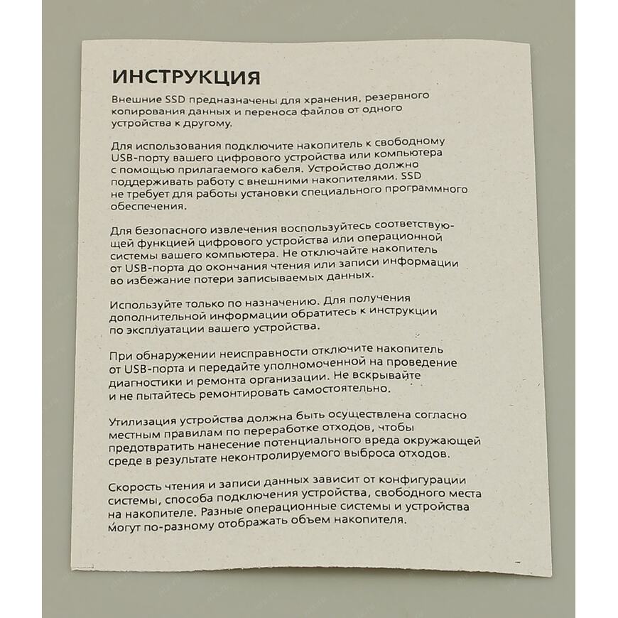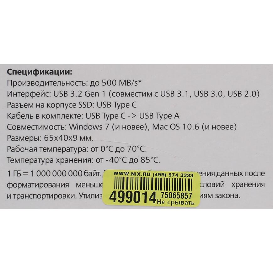 | Тип оборудования | Внешний SSD |