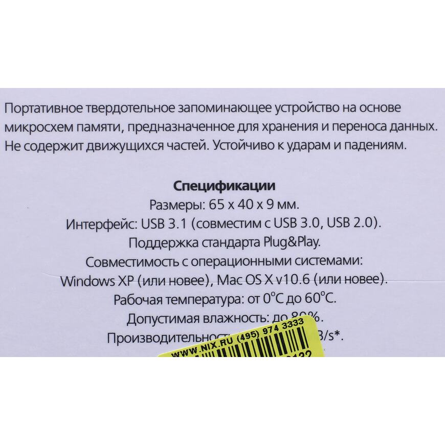 | Интерфейс SSD | USB 3.2 Gen1 (=USB 3.1/3.0 5 Гб/с) |