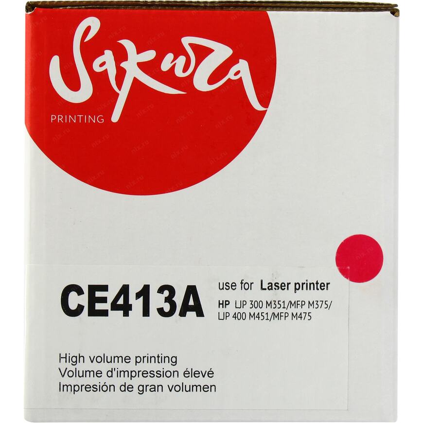 Картридж Sakura CE413A (305A) для HP LJ 400M451DN/LJ 400M451DW/LJ 400451NW/MFP-M475DW/MFP-M475DN, пурпурный, 2600 к.Картридж относится к сегменту «А» или «Премиум», что позволяет добиться такого же качества печати и количества копий, как и у оригинального продукта. Лазерные картриджи Sakura Printing созданы для безупречной работы с вашим принтером или МФУ HP. Вы можете рассчитывать на профессиональное качество комплектующих и тонера от мировых брендов из Японии, Кореи, Индии и т.д. Обеспечивают стабильное качество печати, а также экономят вашу бумагу, время и средства. В комплект поставки входит брендированный пластиковый пакет для утилизации отработанного картриджа. Оригинальность картриджа подтверждается защитной голограммой. Гарантия действует в течение 12 мес. после приобретения картриджа. Хранение бессрочное.
