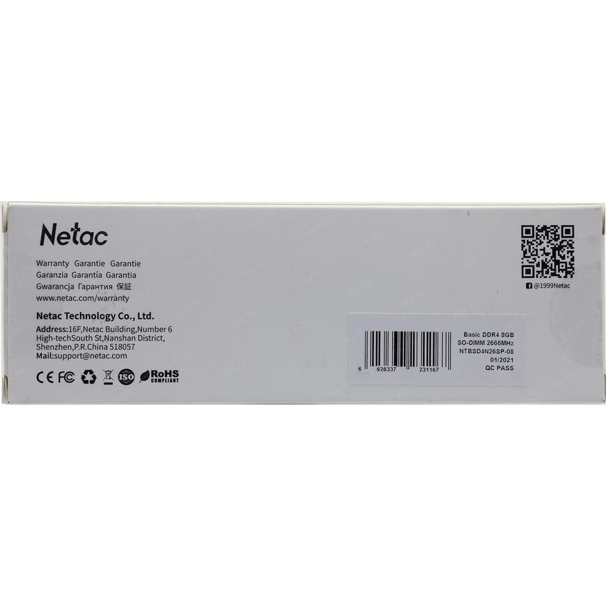 Модуль памяти Netac Basic SO DDR4-2666 8G C19 SODIMM 260-Pin DDR4 / NB PC4-21300 1.2V JEDEC