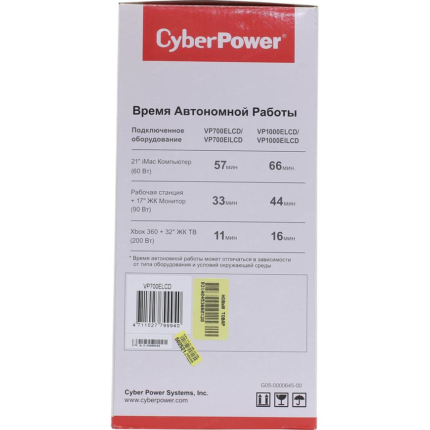 | Время работы от батарей при нагрузке 200 Вт |