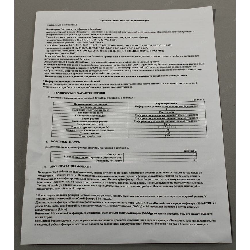 | ПРЕДУПРЕЖДЕНИЕ | Указано приблизительное время работы фонаря при комнатной температуре, заявленное производителем, при использовании новых, полностью заряженных аккумуляторов. Если яркость фонаря регулируется и не указано иное, то режим работы при этом - экономичный (низкая яркость). |