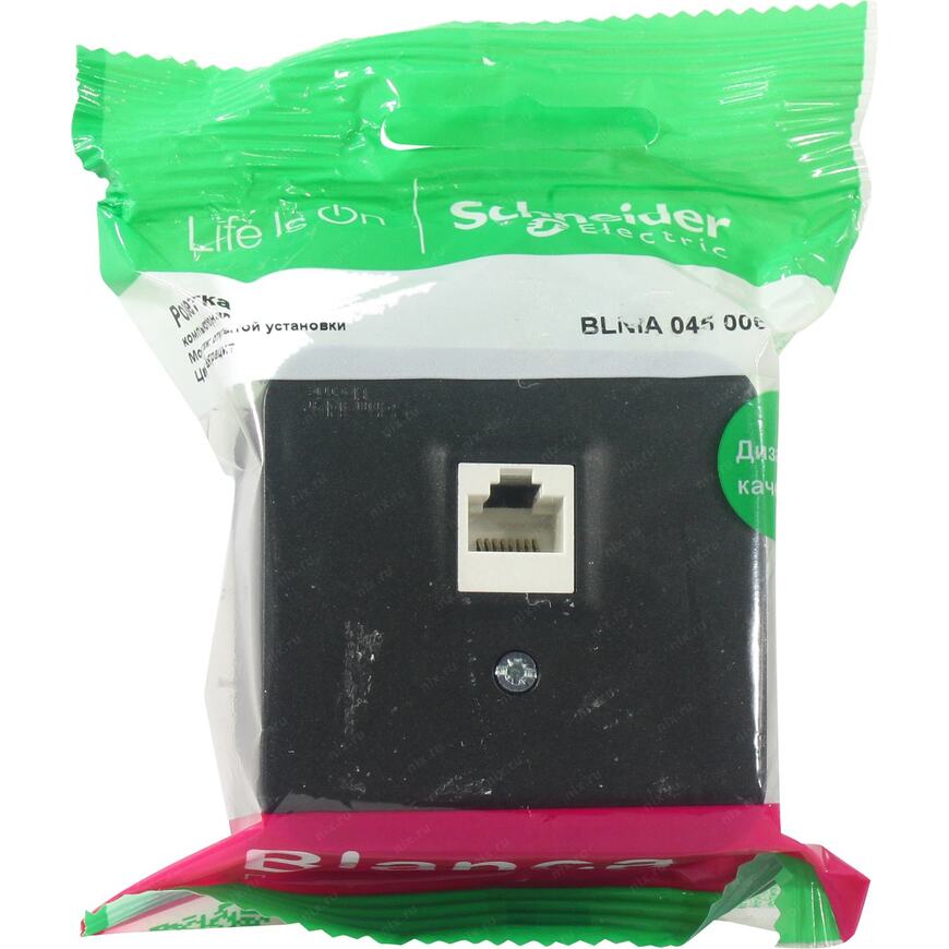 Розетка Systeme Electric (ранее Schneider Electric) BLANCA (антрацит, открытой установки) компьютерная RJ45 категория 5е с изолирующей пластиной предназначена для удобного и быстрого подключения устройств к сети Интернет. Розетка изготовлена из ABS-пластика, проста в установке, прочна и надежна в применении. Изделия серии Blanca - отличное решение для города и дачи.