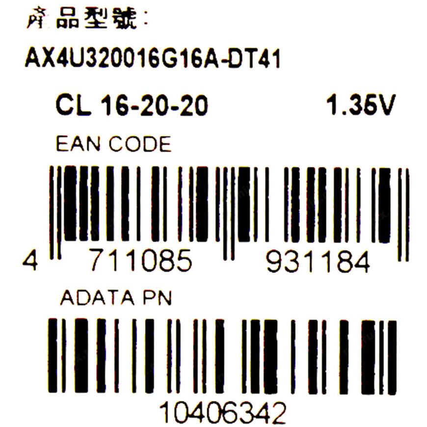 | Модель | AX4U320016G16A-DT41 |
