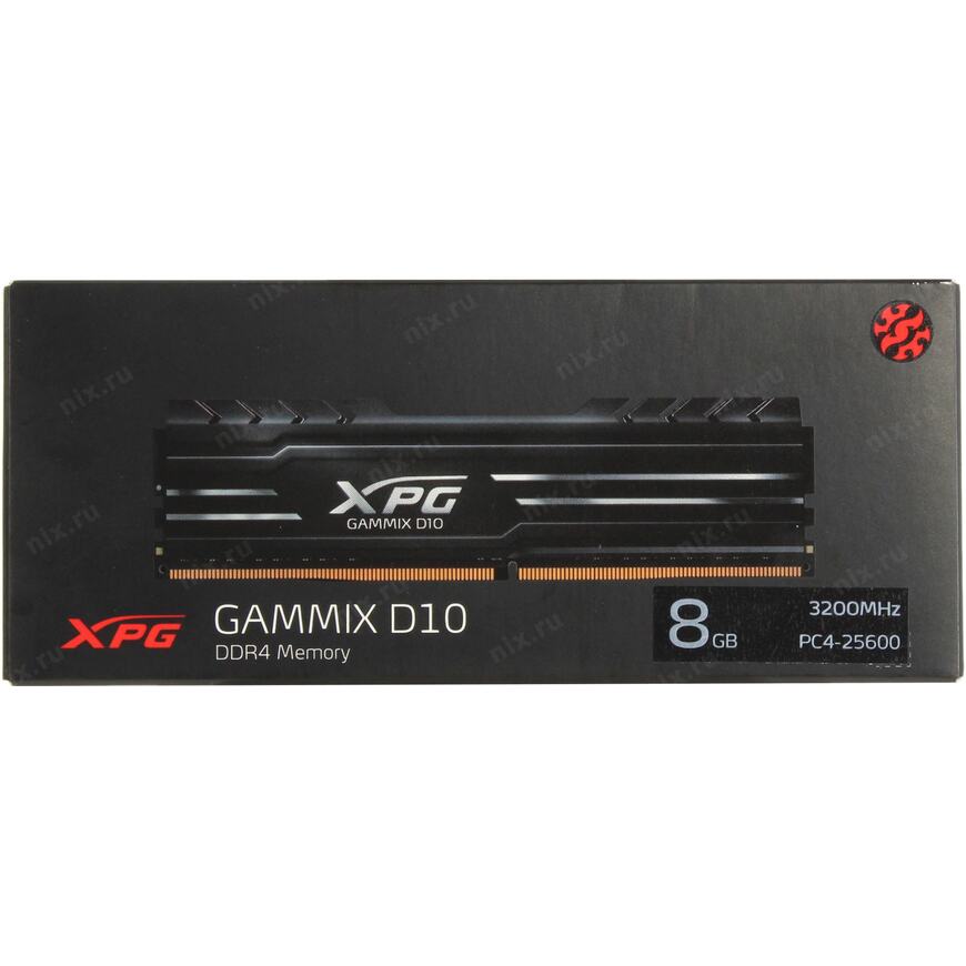 Модуль памяти ADATA 8GB DDR4 UDIMM, XPG GAMMIX D10, 3200MHz CL16-20-20, 1.35V,Черный Радиатор