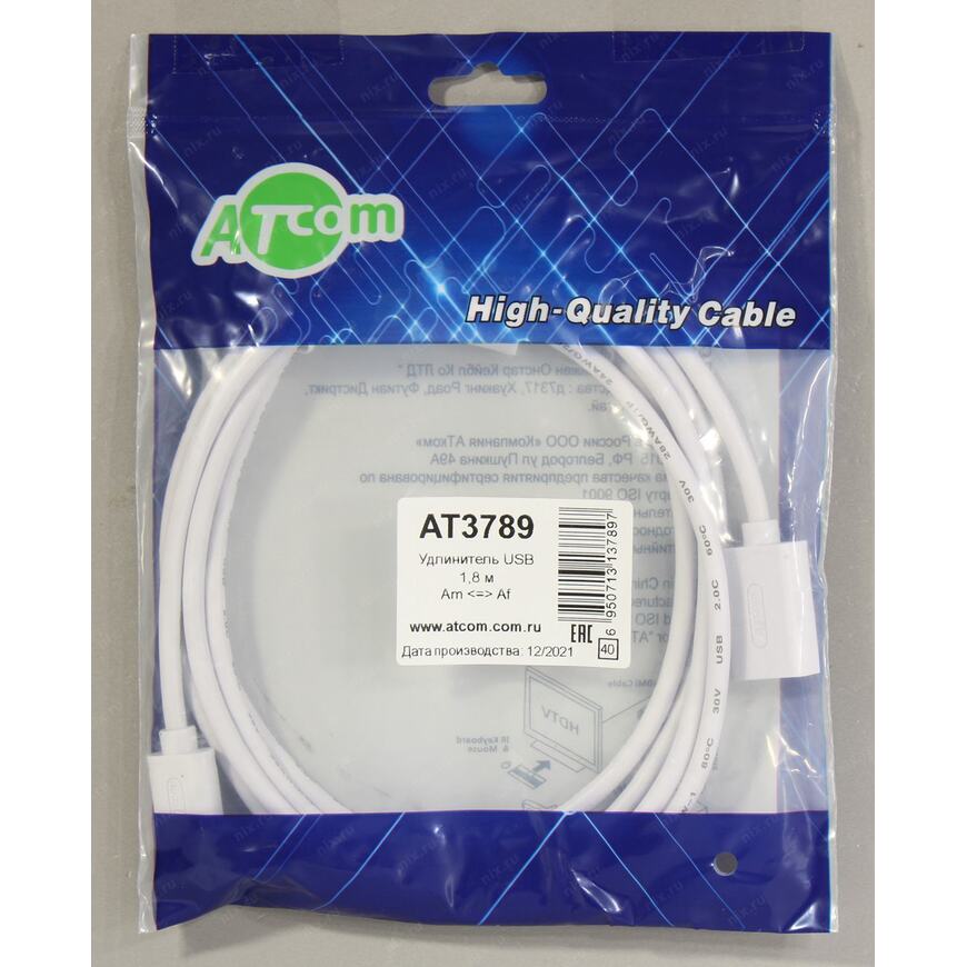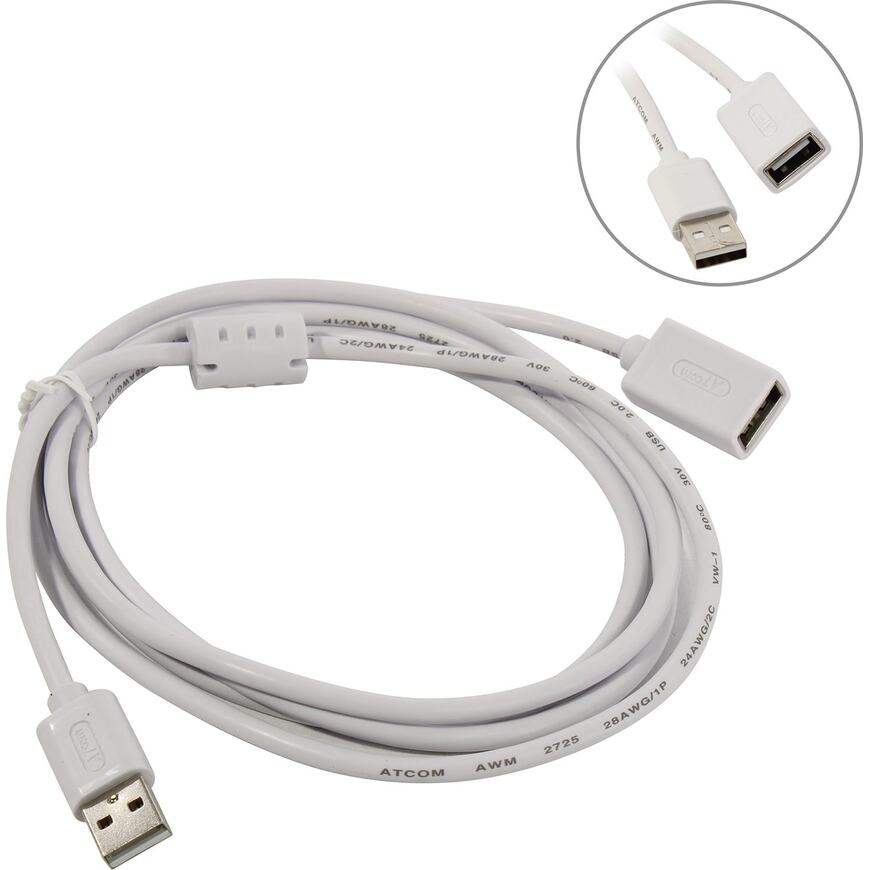 | Описание | Кабель Удлинитель USB 2.0 ATCOM (AM<=>AF) поможет удлинить штатный шнур и позволяет с легкостью подключить к компьютеру, телевизору, смарт приставке различные устройства, например флешки, внешние диски и т.п. |