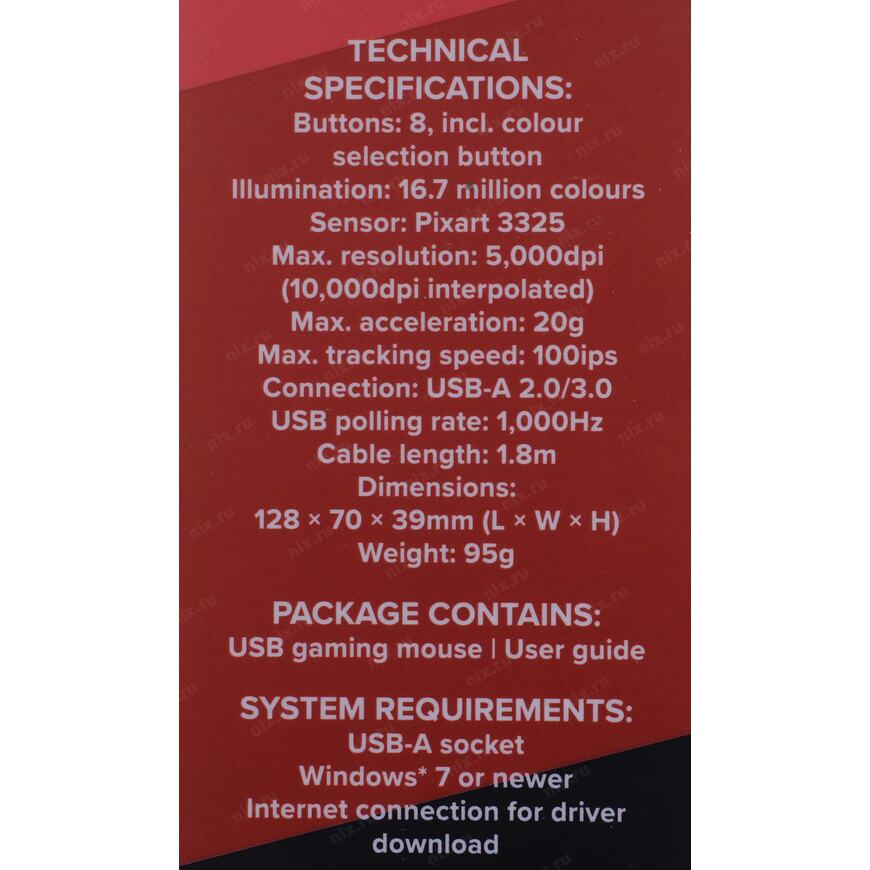 | Тип сенсора | Оптический Pixart Avago PAW3325 |