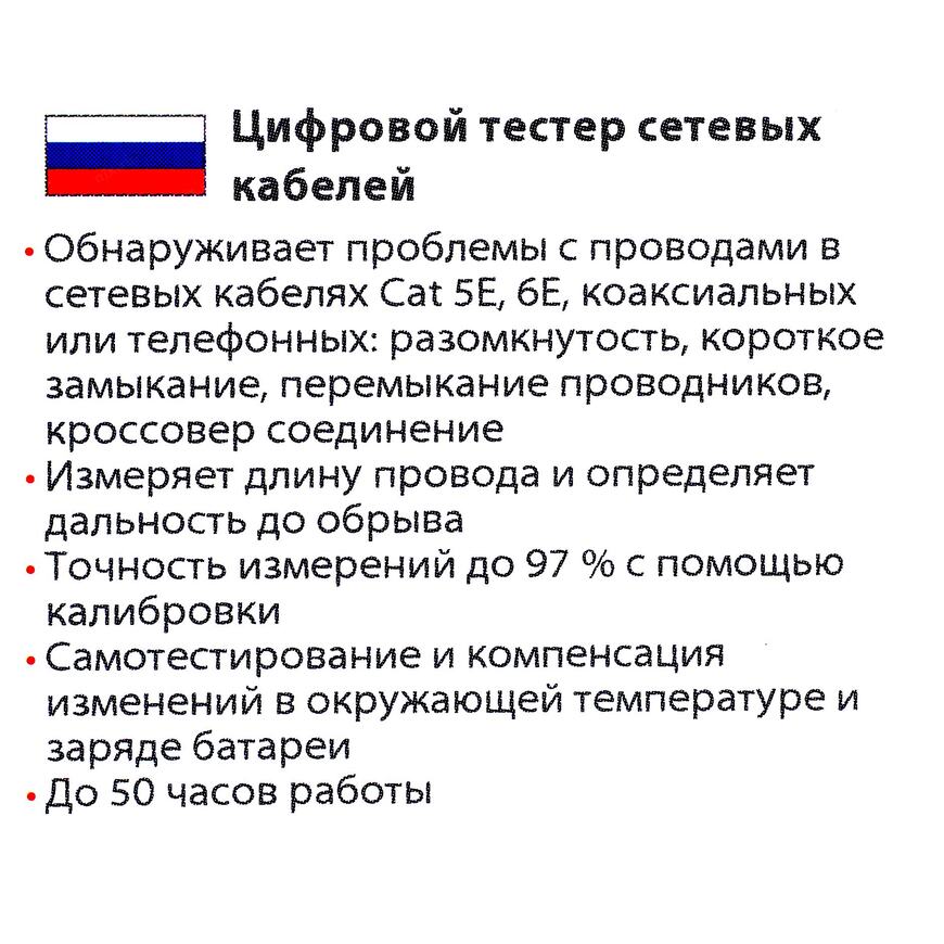 | Тестирование кабеля типа UTP (Cat 5, 5e, 6) | Да |