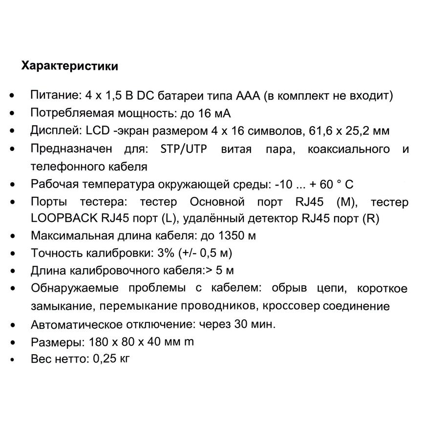 | Тип оборудования | LAN тестер |
