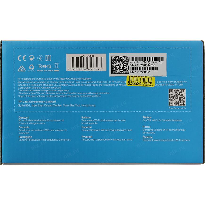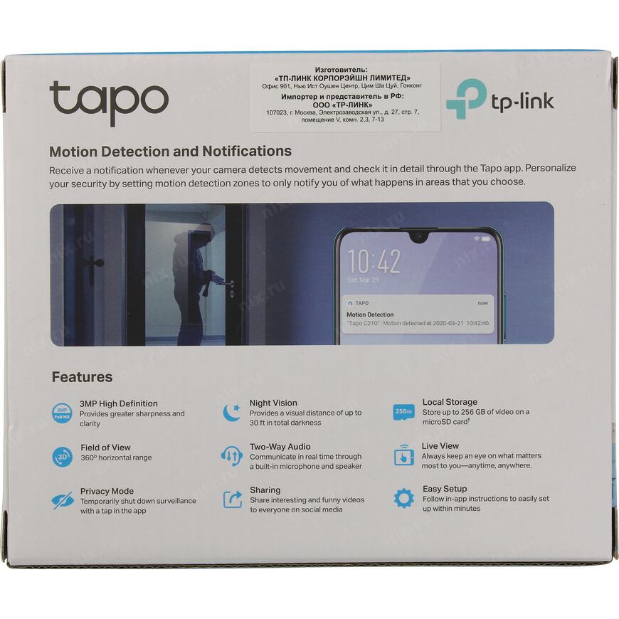 Ссылка на описание: https://www.tp-link.com/ru/home-networking/cloud-camera/tapo-c210/#specifications