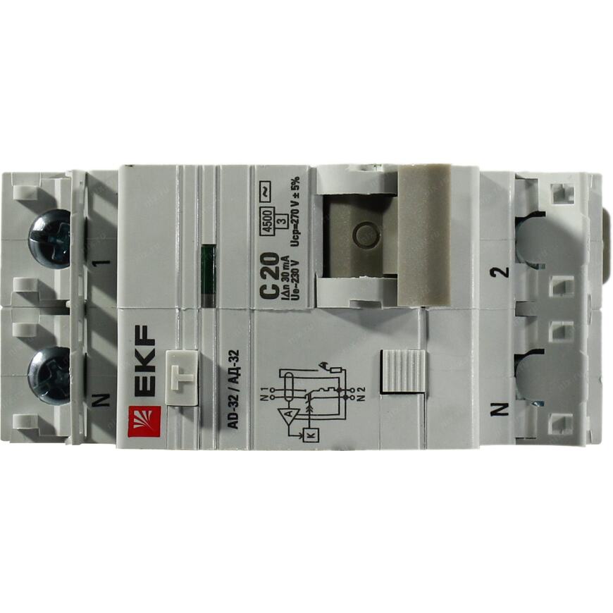 Выключатель автом. дифф. тока EKF DA32-20-30-pro 20A тип C 4.5kA 30мА AC 2П 230В 2мод белый (упак.:1