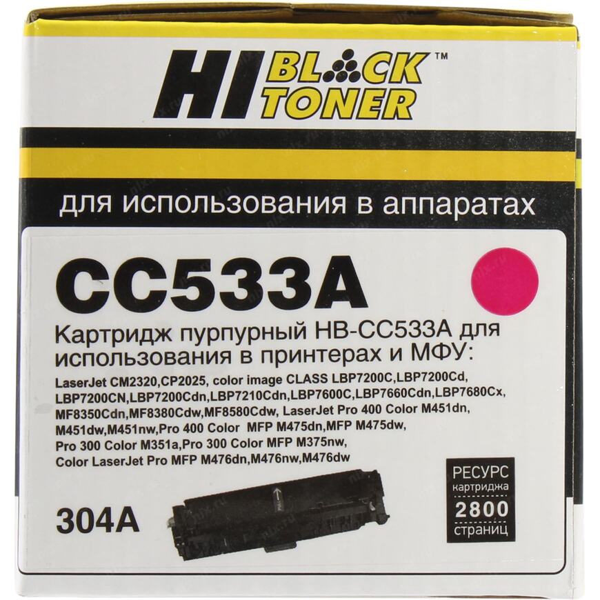 Ресурс принт-картриджа Hi-Black-Toner-CC533A составляет 2800 страниц при 5% заполнении листа.