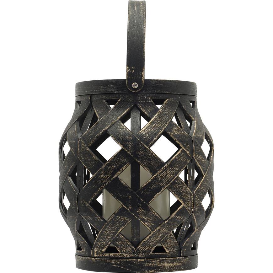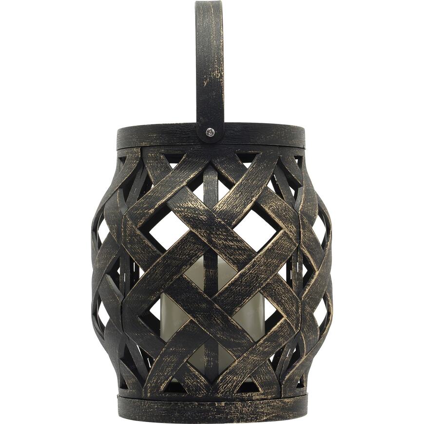 Декоративный фонарь со свечкой в плетеном корпусе бронзового цвета - стильное, оригинальное и безопасное светодиодное украшение для интерьера. В центре находится фигурка, выполненная в виде восковой свечи. Диод, излучающий белый свет теплого оттенка, имитирует настоящее пламя, не нагревается и экономно расходует энергию. Фонарь получает питание от 3 батареек типа ААА и не нуждается в розетке. На корпусе предусмотрен выключатель ON/OFF. Изделия на батарейках абсолютно безопасны в использовании.