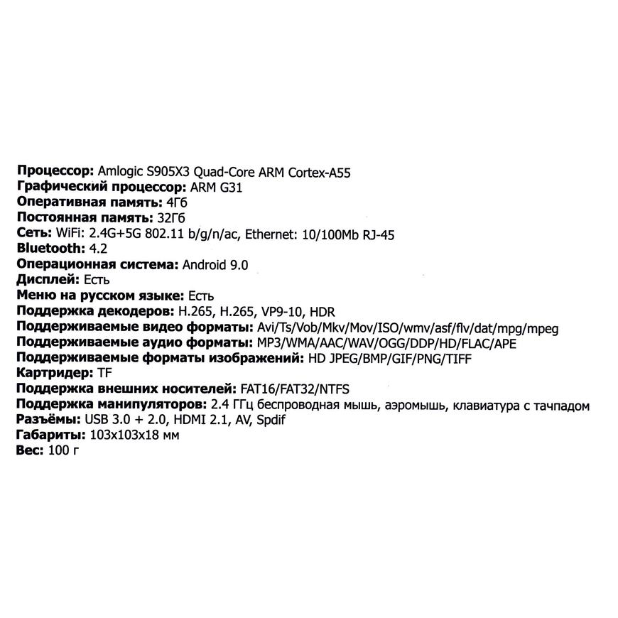 | Процессор | Amlogic S905X3 4x Cortex A55 64 bit (GPU - Mali G31) |
