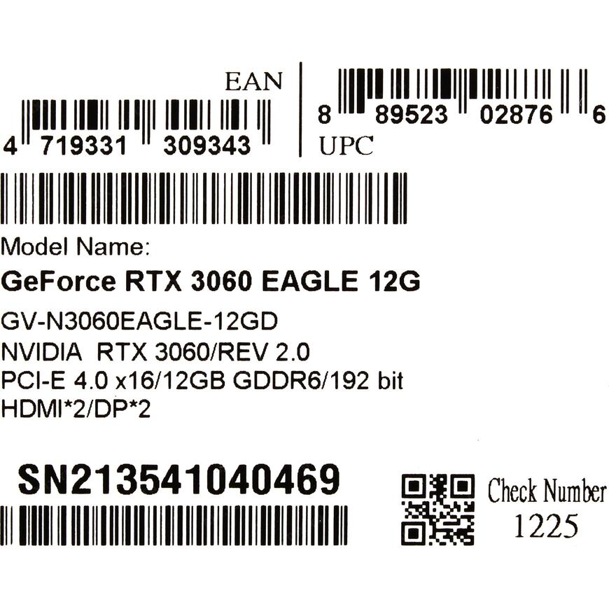 | Модель | GV-N3060EAGLE-12GD Rev2.0 |