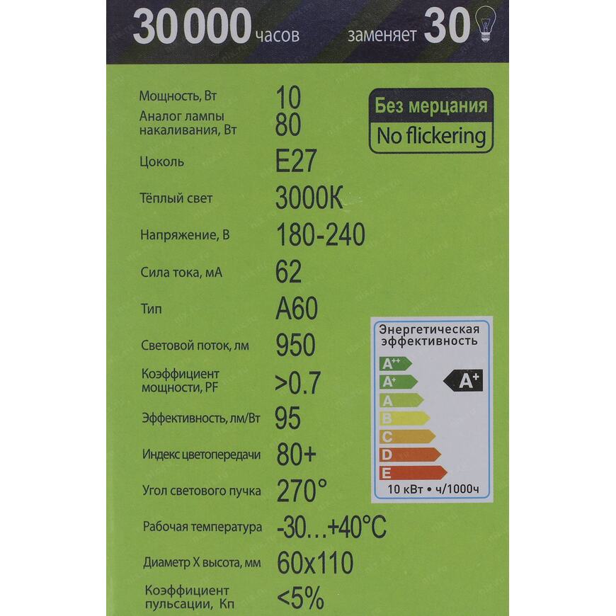 Описание Светодиодная лампа для замены обычной лампы накаливания с цоколем E27.