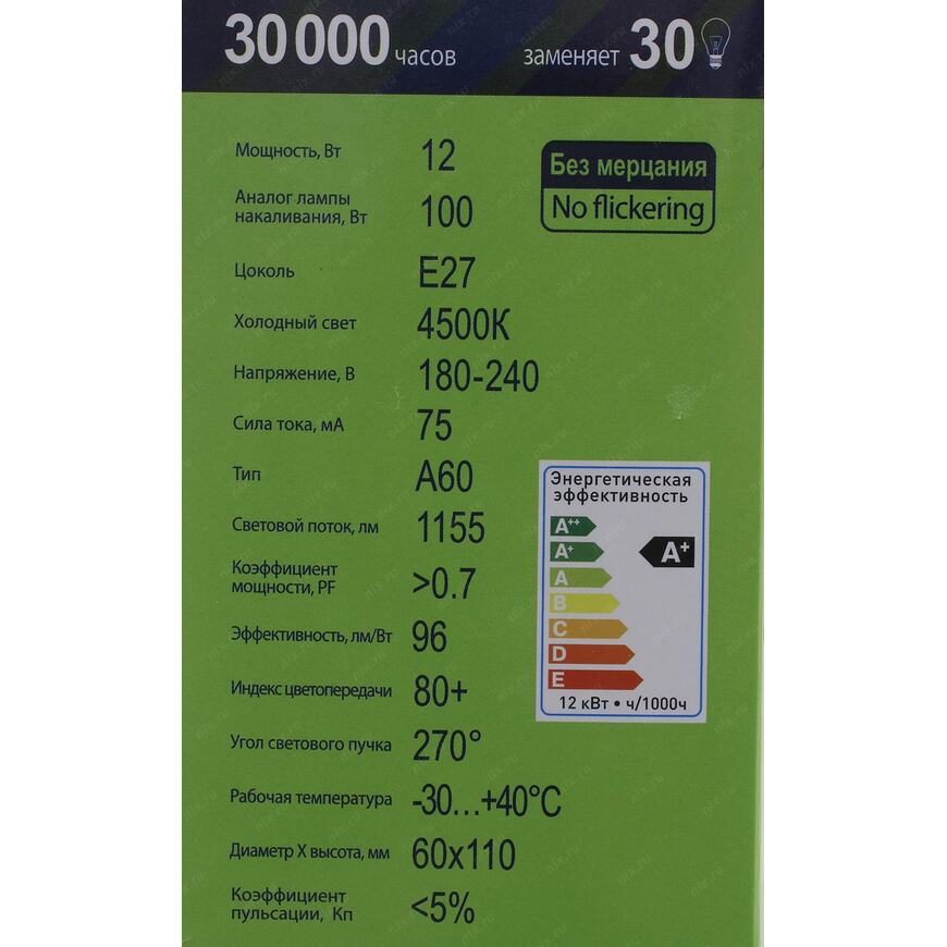 | Описание | Светодиодная лампа для замены обычной лампы накаливания с цоколем E27. |