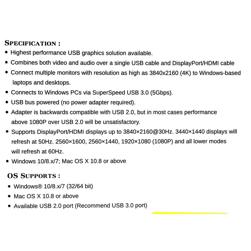 | Описание | Устройство позволяет подключить к компьютеру дополнительный 4K монитор, телевизор или проектор через порт USB 3.0 |