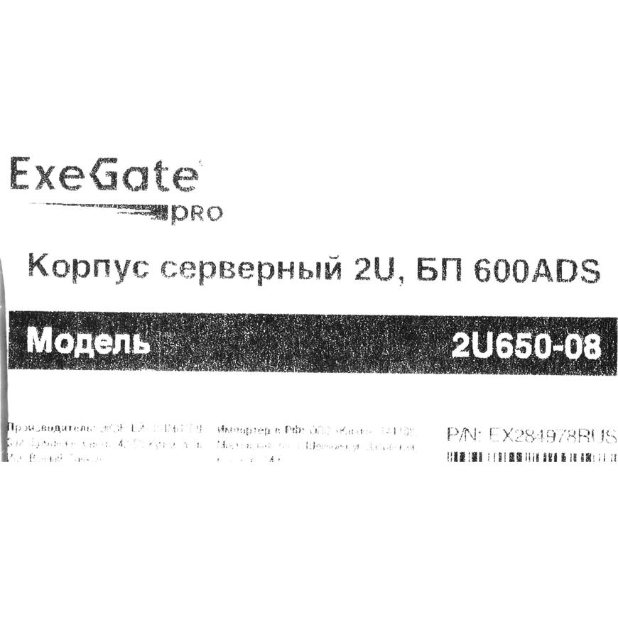 | Модель блока питания | ExeGate ServerPRO-600ADS |