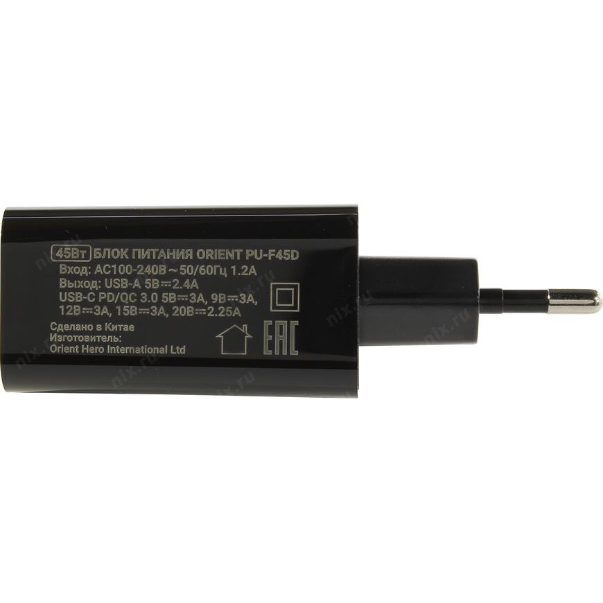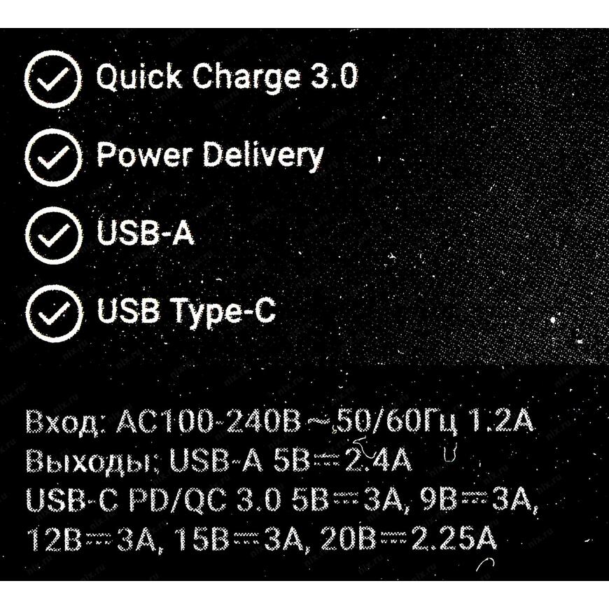 Зарядное устройство с портами USB Type C и Type A, а также с поддержкой функций быстрой зарядки Qualcomm Quick Charge 3.0 и USB Power Delivery для мобильных устройств (максимальная мощность 45 Вт)