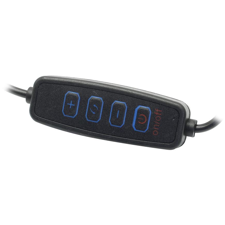 | Описание | Кольцевая лампа равномерного освещения скреплением для смартфона. Подходит для фото и видео съемки. Проводной пульт ДУ позволяет изменять яркость и оттенок освещения. |
