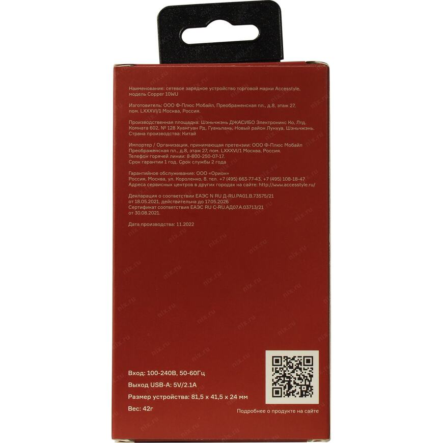 | Описание | Зарядное устройство с портом USB Type A мощностью 10 Вт. |