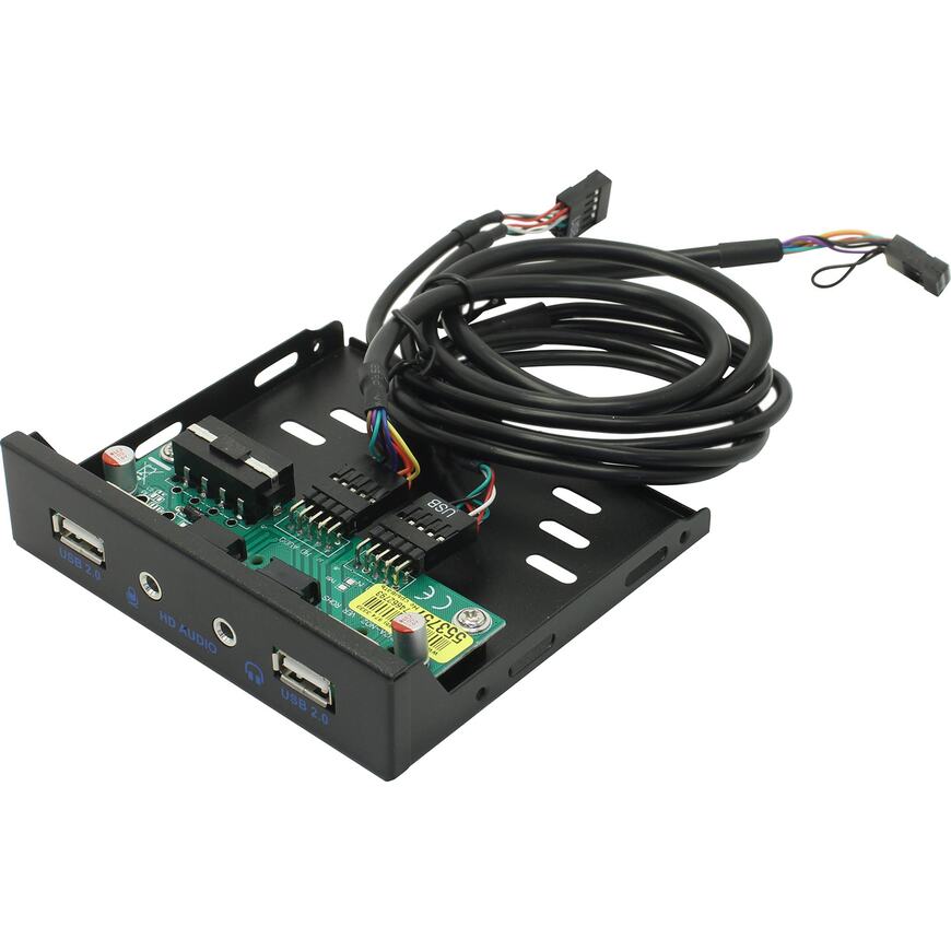Панель с 2 портами USB 2.0 и разъемами для подключения гарнитуры; устанавливается в отсек 3.5 дюйма системного блока и подключается к 9-пиновому разъему материнской платы.