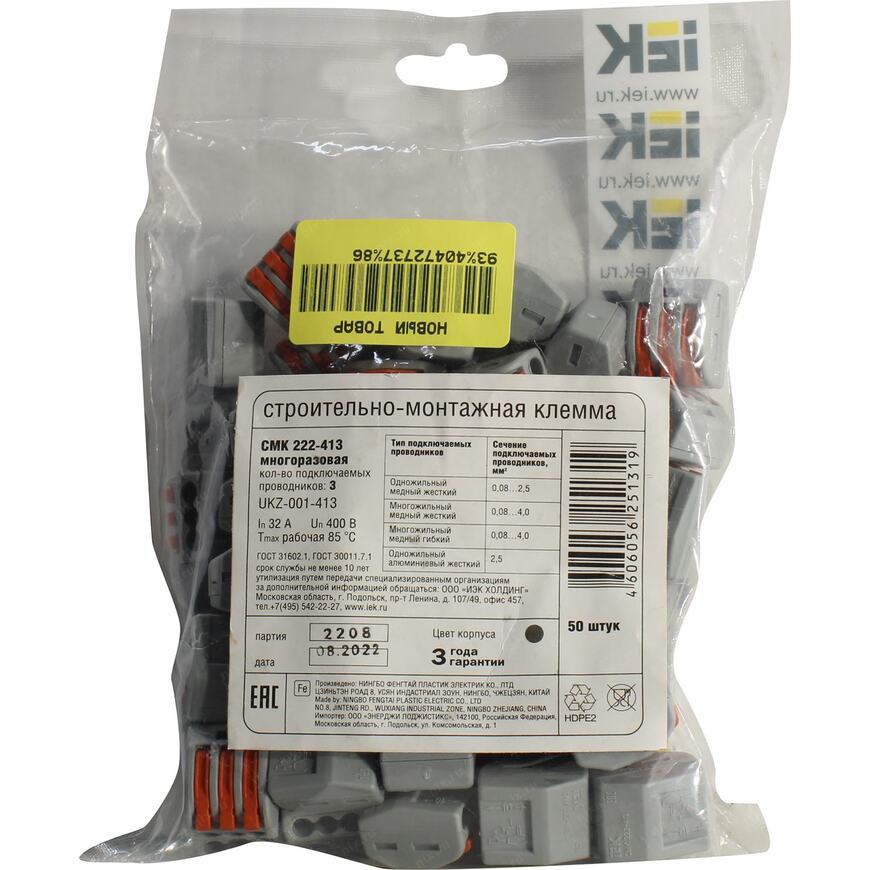 | Код товара | Соединительная клемма многоразовая, 3-проводная (0.08 - 2.5/4 кв. мм), 50 шт. |