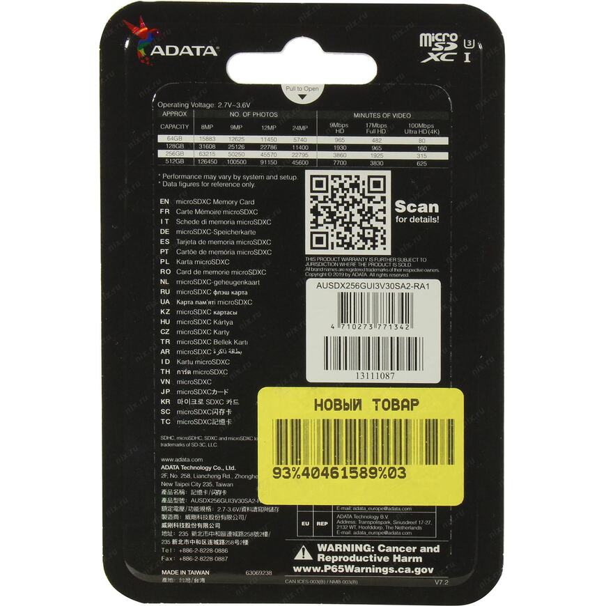 Карта памяти в комплекте с адаптерами, позволяющим использовать ее в любых устройствах совместимых с SD card или miniSD.