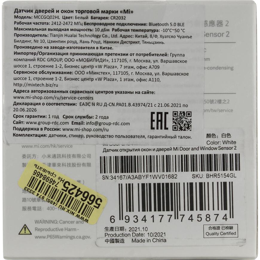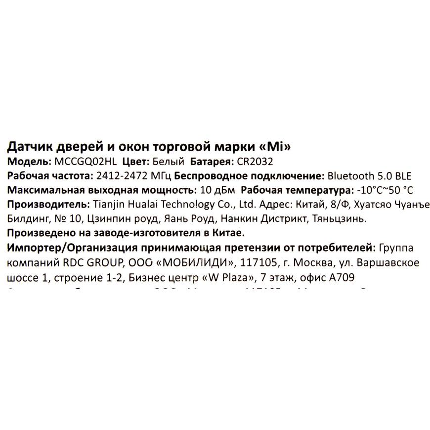 | Серия | Mi Window and Door Sensor 2 |