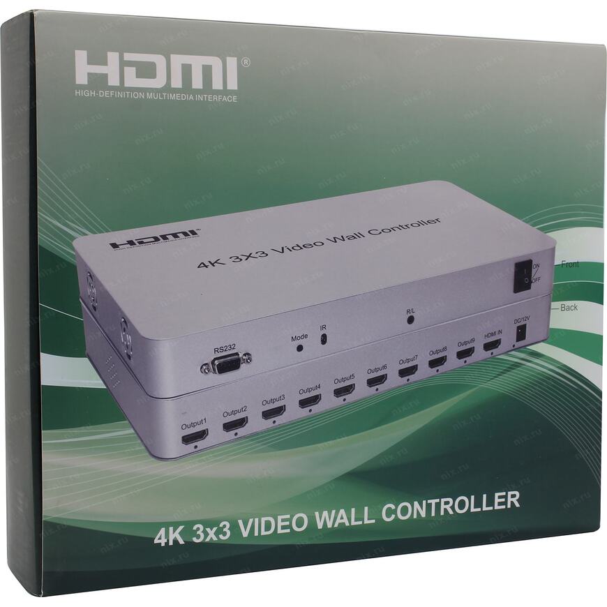 | Описание | Контроллер позволяет сделать видеостену из нескольких мониторов/телевизоров/проекторов (до 9 или более при каскадном подключении еще одного контроллера). Поддерживается передача звука PCM2.0. Режимы отображения: 1x1, 1x2, 1x3, 1x4, 2x1, 2x2, 2x3, 2x4, 3x1, 3x2, 3x3, 4x1, 4x2. Есть компенсация рамок экранов. |